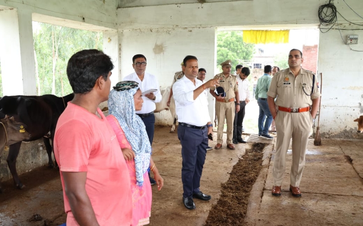 बरेली । जिलाधिकारी रविन्द्र कुमार ने आज वरिष्ठ पुलिस अधीक्षक अनुराग आर्य के साथ विकासखंड बिथरी चैनपुर के ग्राम नरियावल में श्री श्यामा प्रसाद मुखर्जी रुर्बन मिशन योजना के अंतर्गत नरियावल में स्थापित पशुशाला का निरीक्षण किया।