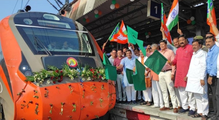 बरेली।मेरठ लखनऊ वंदे भारत एक्सप्रेस को प्रधानमंत्री नरेंद्र मोदी ने शनिवार को हरी झंडी दिखाई जिसके बाद शाम को यह ट्रेन बरेली जंक्शन पहुंची। इसके साथ ही बरेली को दूसरी वंदे भारत एक्सप्रेस मिल गई। रेल अधिकारियों को मुताबिक ये एक एनॉगरल रन था। नियमित रूप से ट्रेन का संचालन रविवार से किया जाएगा। ट्रेन के बरेली जंक्शन पहुंचने पर जोरदार स्वागत किया गया। जनप्रतिनिधियों ने हरी झंडी दिखाकर ट्रेन को रवाना किया।