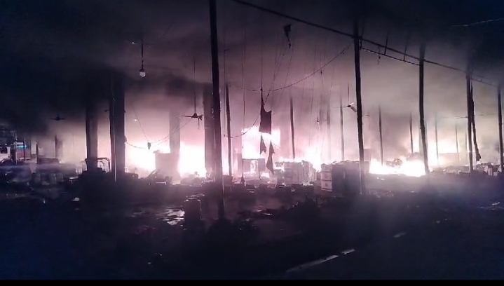 बरेली। डेलापीर फल मंडी में अज्ञात कारणों से भीषण आग लग गई ।आग से 28 दुकानें जलकर राख हो गई।