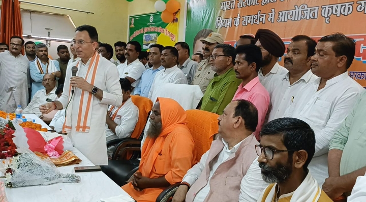 बरखेड़ा।केंद्रीय मंत्री व पीलीभीत सासंद जितिन प्रसाद का बरखेड़ा क्षेत्र के एक दिवसीय दौरा के आरम्भ में आज आज दोपहर 12 बजे ब्लॉक सभागार किसानों के साथ बासमती चाबल ब प्याज के निर्यात को रोक हटाने के सम्बंध में गोष्ठी करते हुये मुख्य अतिथि सांसद एवं राज्यमंत्री जितिन प्रसाद ने बताया कि सरकार ने किसानों की बासमती चाबल व प्याज के उचित मूल्य मिलने एवं आम जनता को इन दोनों चीजों के अधिक दाम पर न खरीदना पड़े इसको ध्यान में रखते हुये दोनो बस्तुयों को फ्री होल्ड करते हुये कहीं भी बेचने की नीति बनायी हैं।पीलीभीत को मॉडल बनाकर ही चैन लूँगा जिसमे हर बर्ग के लोगों के उत्थान का ध्यान रखा जायेगा।