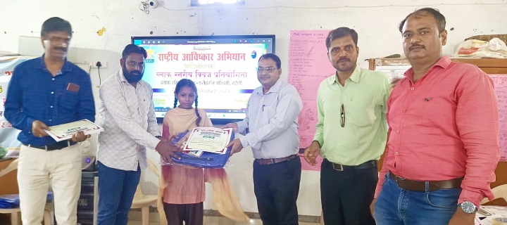 बरेली ।क्षेत्र के ब्लॉक संसाधन केंद्र परसाखेड़ा पर मे राष्ट्रीय आविष्कार अभियान कार्यक्रम के तहत उच्च प्राथमिक विद्यालयों के 90 छात्रों ने प्रतिभाग किया। जिसमें 30 विद्यालयों के तीन तीन बच्चों ने प्रतिभाग किया। इन बच्चों का एक समूह बनाकर बिज्ञान व गणित की परीक्षा कराई गई। क्विज प्रतियोगिता के द्वारा पांच छात्रों को माडल निर्माण के लिए चयनित किया गया। खंड शिक्षा अधिकारी भानुशंकर गंगवार ने बताया कि ब्लॉक स्तर पर चयनित मेधावियों को पुरस्कृत कर जिला स्तरीय कमेटी को भेजा गया है। बीईओ ने प्रतिभाग कर रहे हैं समस्त बच्चों को प्रशस्ति पत्र, मोमेंटो, विज्ञान किट व उच्च कोटि की विज्ञान पुस्तक देकर पुरस्कृत किया गया। प्रतियोगिता का आयोजन बीईओ के द्वारा किया गया। इस मौके पर प्राथमिक शिक्षा मित्र संघ के जिला अध्यक्ष कपिल यादव, एआरपी जनार्दन तिवारी, गौरव सक्सेना, राजकुमार यादव, सहायक लेखाकार प्रद्युमन यादव, मनोज शर्मा, दिग्विजय गंगवार आदि मौजूद रहे।।