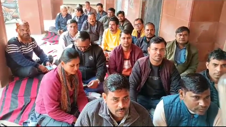 बरेली । फरीदपुर के मनीष कश्यप लेखपाल की हत्या के बाद बरेली जिले के लेखपालों में आक्रोश और बड़ी एजेंसी से जांच करने की मांग करते हुए बैठे अनिश्चितकालीन धरने पर।