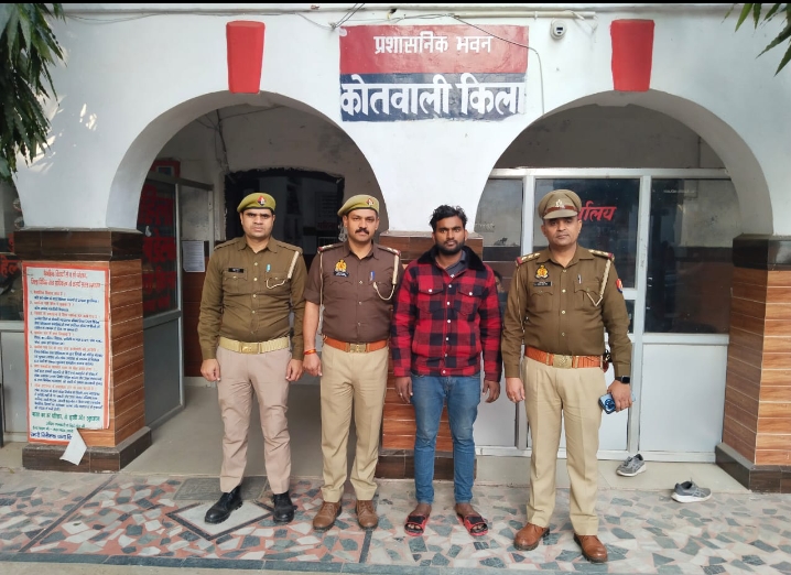 थाना किला पुलिस टीम द्वारा विवेचना के दौरान प्रकाश में आये घटना में संलिप्त अभियुक्त हामिद अहमद पुत्र अकिल अहमद निवासी न्यू कटघर हाल निवासी किला छावनी थाना किला को मुखबिर की सूचना पर स्वालेनगर चौराहा थाना किला क्षेत्र से गिरफ्तार किया गया। अभियुक्त के कब्जे से घटना में प्रयुक्त रस्सी को अभियुक्त की निशादेही पर बरामद किया गया। गिरफ्तार अभियुक्त के विरुद्ध नियमानुसार विधिक कार्यवाही की गयी। घटना का सफल अनावरण करने वाली पुलिस टीम को 5 हजार रुपये के नकद पुरस्कार से सम्मानित किया गया है। पुलिस टीम में जितेन्द्र सिंह प्रभारी निरीक्षक ,उप निरीक्षक रविन्द्र कुमार , उप निरीक्षक रविराज पावडिया , कांस्टेबल विनीत कुमार , चालक भगत कुमार मौजूद थे।