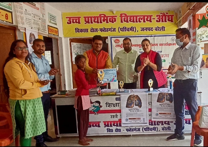 बरेली फतेहगंज पश्चिमी : स्वास्थ्य एवं परिवार कल्याण मंत्रालय भारत सरकार के राष्ट्रीय तम्बाकू नियंत्रण कार्यक्रम के अंतर्गत जिला स्वास्थ्य समिति के निर्देशन में सामुदायिक स्वास्थ्य केंद्र खिरका फतेहगंज पश्चिमी के चिकित्सकों का दल आज उच्च प्राथमिक विद्यालय औंध में जागरुकता अभियान हेतु पहुंचा जिसने विद्यालय के बच्चों को नशे से होने वाले नुकसानों के बारे में बताया और चित्रकला प्रतियोगिता का आयोजन भी किया। बच्चों को धूम्रपान और तम्बाकू से संभावित हानियों का चित्रण करते हुए उनसे बचाव के संदेश लिखने थे।