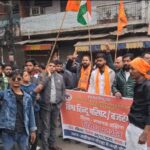 तालाब की जमीन पर अवैध कब्जे व निर्माण के प्रकरण में हिंदू संगठनों का विरोध प्रदर्शन