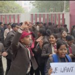 राजश्री मेडिकल कॉलेज के बीएससी नर्सिंग प्रथम वर्ष के छात्रों और छात्राओं ने किया धरना प्रदर्शन।