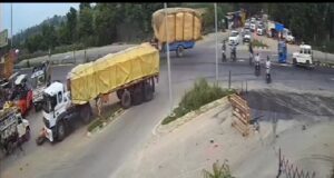 अनियंत्रित ट्रक ने कार और दो बाईकों को रौंदा,घटना का सीसीटीवी आया सामने