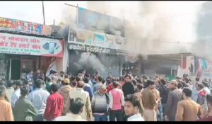 इलेक्ट्रॉनिक की दुकान में लगी भीषण आग लाखों का सामान जलकर हुआ खाक।