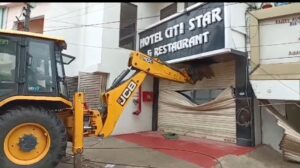 पांच दिन पहले दिन दहाड़े हुई फायरिंग के मुख्य आरोपी के होटल पर चला बुलडोजर