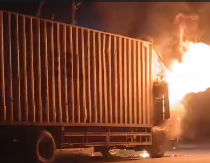 हाइवे पर खड़े ट्रक में लगी अचानक आग, एक घंटा बाधित रहा यातायात