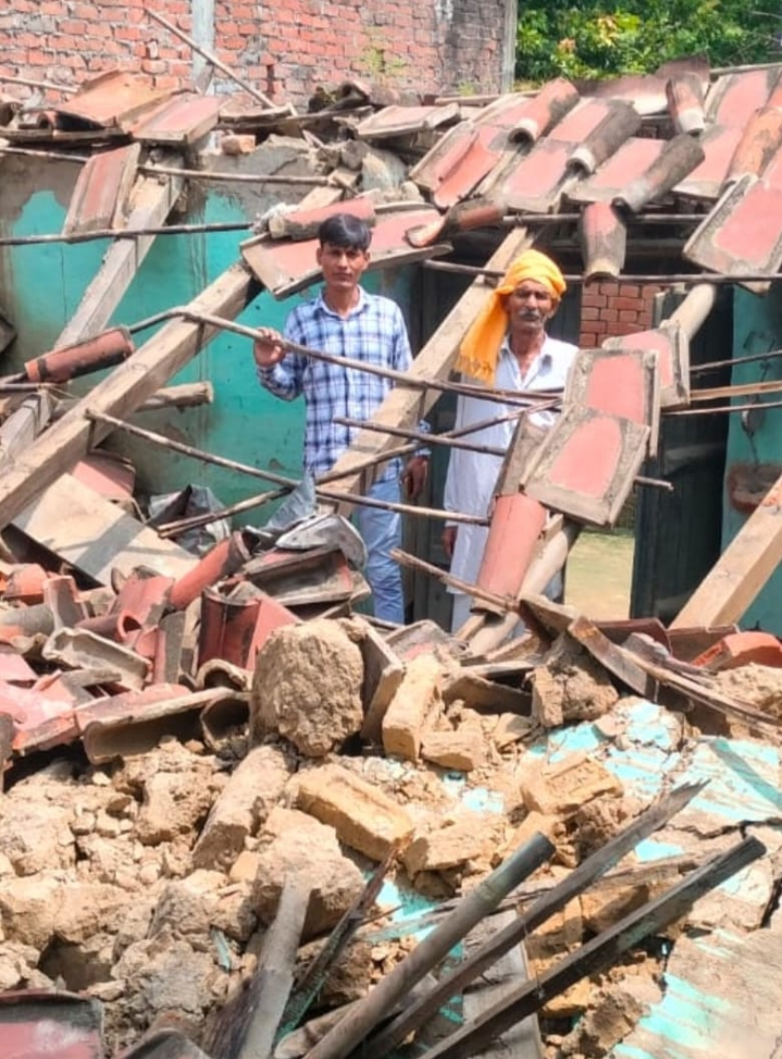 बरसात में गरीब किसान का मकान गिरा, मुआवजे की मांग।