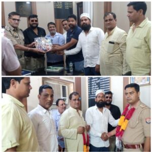पूरनपुर। उद्योग व्यापार प्रतिनिधि मंडल के युवा विंग जिलाध्यक्ष शैली शर्मा ने नगर अध्यक्ष नितिन वर्मा व नगर इकाई के पदाधिकारियों के साथ शनिवार को नगर के नवागत क्षेत्राधिकारी प्रतीक दहिया और कोतवाल पवन पांडे से शिष्टाचार भेंट की। इस दौरान उन्हें स्मृति चिन्ह, माला व बुके भेंट किए गए।