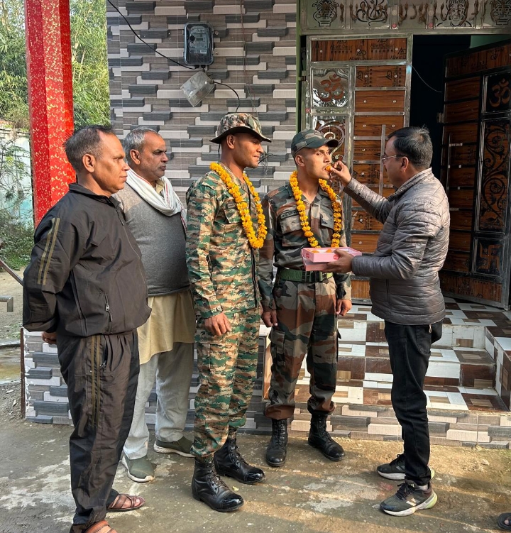 बरखेड़ा(पीलीभीत) आज क्षेत्र के गांव मुड़िया हुलास निवासी विमलेश मिश्रा के पुत्रों क्रमशः आकाशदीप मिश्रा व अर्पित मिश्रा ने वर्ष 2024 25 में सेना भर्ती में प्रतिभाग किया था जिसमें पास होने पर आकाश दीप मिश्रा को उड़ीसा बा अर्पित मिश्रा को नासिक ट्रेनिंग सेंटर भेजा गया था आज 6 माह की ट्रेनिंग के पूरी होने के बाद जब दोनों सैनिक की वर्दी में अपने पैतृक गांव आए तो गांव में हर्षोल्लास का माहौल बन गया इस मौके पर ग्राम प्रधान पति राजेंद्र पाठक ने दोनों सैनिकों को माला पहना कर व मिठाई खिलाकर ढोल नगाड़ों के साथ उनका स्वागत किया और उनके उज्जवल भविष्य की कामनाएं करते हुए कहा कि देश सेवा ही सर्वोपरि सेवा है और धन्य है वह मां जिसने अपने दोनों पुत्रों को देश सेवा हेतु सेना में भेज कर अपने परिवार और गांव का मान बढ़ाया है गांव के इन दो सपूत पुत्रों से प्रेरणा लेकर गांव के अन्य युवक भी देश सेवा हेतु सदैव तत्पर रहेंगे।