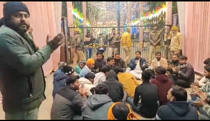 बरेली। क्रिसमस से एक दिन पहले बरेली में बजरंग दल के कार्यकर्ताओं ने प्रदर्शन किया। थाना कैंट क्षेत्र स्थित सेंट अल्फोंसस कैथेड्रल चर्च के बाहर बजरंग दल के कार्यकर्ता एकत्र हुए और जमकर नारेबाजी की। प्रदर्शन के दौरान कार्यकर्ताओं ने चर्च के गेट पर बैठकर हनुमान चालीसा का पाठ किया और “जय श्रीराम” व “हर हर महादेव” के नारे लगाए।