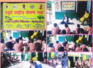 बरेली ।चतुर्थ राष्ट्रीय पोषण माह के अन्तर्गत, क्षेत्रीय आयुर्वेदिक एवम् यूनानी अधिकारी डॉ डी के दिवेदी के निर्दशानुसार आज प्रा वि किशनपुर में पोषण माह के अन्तर्गत योग शिविर का आयोजन किया गया