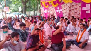 चीफ इंजीनियर कार्यालय परिसर में सामूहिक उपवास पर बैठा जेई संगठन