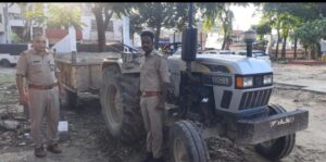 गश्त के दौरान पुलिस ने पकड़ी अवैध खनन की ट्राली