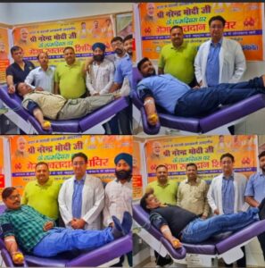पीलीभीत में पीएम मोदी के जन्मदिन के अवसर पर उत्तर प्रदेश उद्योग व्यापार प्रतिनिधि मंडल द्वारा किया गया रक्तदान।