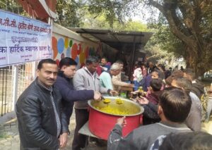 बरेली ।एनसीसी कर्मचारी संघ के तत्वाधान में बरेली कॉलेज बरेली के पूर्वी गेट पर गुरुवार को दोपहर 1:00 बजे से खिचड़ी सहभोज कार्यक्रम हुआ | एनसीसी कर्मचारी संघ के अध्यक्ष डॉ अंचल अहेरी एवं महामंत्री जगपाल सिंह भाटी ने बताया कि संघ की ओर से विगत वर्षों की भांति इस वर्ष भी खिचड़ी सहभोज कार्यक्रम उत्साह के साथ कराया जा रहा है | सहभोज में 1000 से अधिक लोगों ने प्रसाद ग्रहण किया | राहगीरों के साथ ही एनसीसी अधिकारियों, कर्मचारियों, बरेली कालेज के छात्र/ छात्राओं एवं विभिन्न कर्मचारी संगठनों के प्रतिनिधियों ने सहभोज में प्रतिभाग किया | खिचड़ी सहभोज में स्वच्छता का विशेष ध्यान रखा गया | सहभोज कार्यक्रम में मुख्य रुप से कर्नल अमन नेगी, कर्नल मुकुल मंकू, कर्नल सुधांशु दीक्षित, सूबेदार मेजर आनंद सिंह, टीकाराम शर्मा, जगदीश चंद्र जोशी, सुभाष जी, सुनील कुमार जैन, तापस मिश्रा, इंजीनियर विवेक शर्मा, राजीव शर्मा, कृष्ण कुमार मौर्य, ललित मोहन, उदयवीर सिंह, गार्गी शर्मा, नीरजा, सोनी अम्बवानी, कंचन चौधरी, रामसिंह, महेंद्र पाल गोला, सुधीर कुमार वर्मा, दीपक कुमार, आशीष कुमार, विवेक कुमार, सोमपाल, अशोक कुमार, शाजिया, अनीता एवं उग्रपाल आदि उपस्थित रहे |